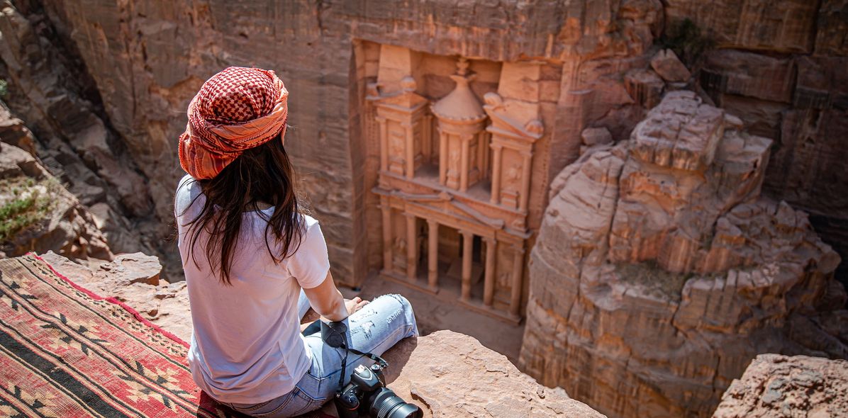 Wer sich für eine Rundreise durch Jordanien entscheidet, kommt an Petra natürlich nicht vorbei. Die monumentalen Grabtempel, direkt in Fels gemeißelt, sind Weltkulturerbe und standen schon lange auf meiner persönlichen Entdeckerliste. Ganz besonders wird der Besuch der antiken Ruinenstadt allerdings erst, wenn man die Touristenpfade verlässt und auf dem Wanderweg „Back door hiking route to the Monastery“ um das eigentliche Zentrum Petras herumläuft und so von hinten an die Felsenstadt gelangt. Auf diesen (so gut wie) vollkommen verlassenen Wegen geht man durch eine abwechslungsreiche Landschaft an Schluchten entlang, über Hügel und durch Täler - grandiose Aussichten über die Wüste von Wadi Musa garantiert! Am besten fragt ihr vor Ort euren Reiseleiter nach dem besonderen Wanderweg. Ich war mit einigen Freunden auf eigene Faust im Mietwagen unterwegs und wir haben einfach auf einem Parkplatz einen Fahrer angesprochen, der uns unkompliziert den Weg erklärt hat. Knapp zehn Gehminuten von der Monastery entfernt findet man bei einem hübschen Aussichtspunkt übrigens auch noch ein Café, das einen Abstecher lohnt.