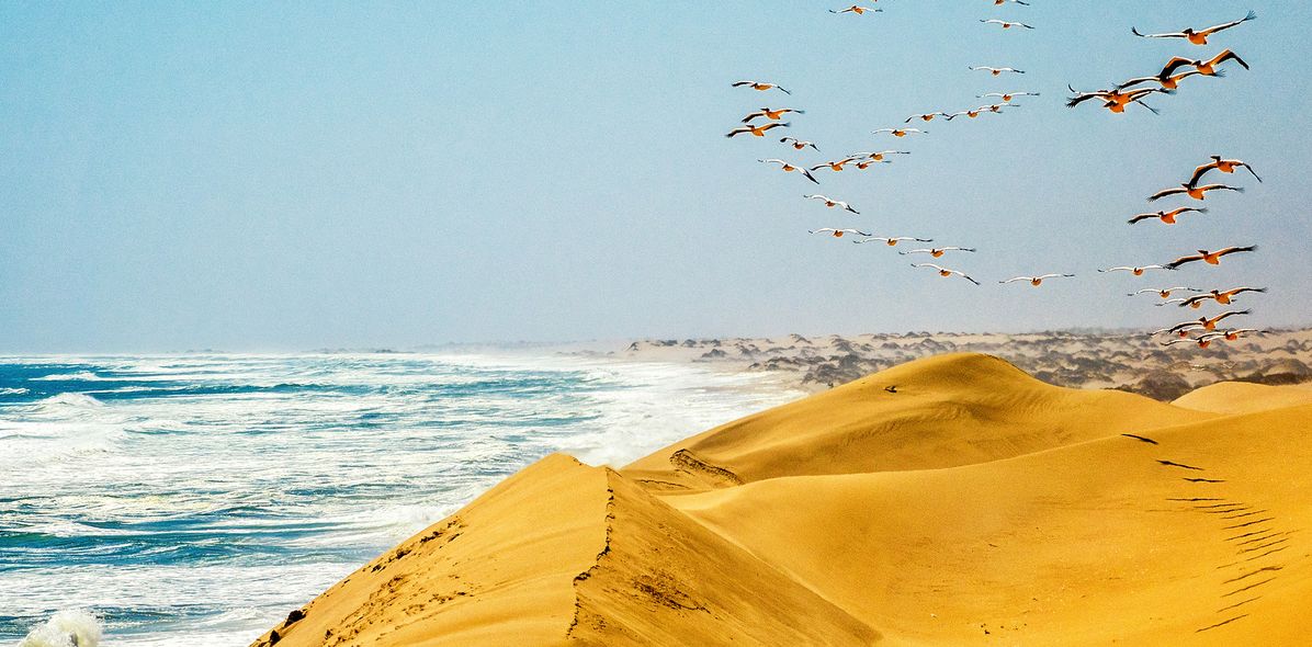 Walvis Bay ist nicht nur der Name einer pulsierenden und aufstrebenden Hafenstadt, sondern auch Bezeichnung für die vor der Stadt liegende märchenhafte Bucht. Sie erstreckt sich in einer geschützten Lagune, die als eine der größten Brutstätten für Land- und Seevögel im südlichen Afrika gilt. Um die Jahreswende besuchen hunderttausende Zugvögel aus dem kalten Europa dieses idyllische Feuchtgebiet, das dadurch zu einem Paradies für Natur- und Vogelliebhaber wird. Besonders spektakulär ist der Anblick der Flamingos, die weite Teile der Lagune wie einen rosafarbenen Teppich bedecken. Schon nach einem kurzen Spaziergang vom Stadtzentrum aus werden Sie Zeuge dieses faszinierenden Naturschauspiels. Noch näher wird der Kontakt zur Natur auf einer Bootstour durch die Lagune. Die hier lebenden Robben sind so zahm, dass sie keine Angst vor einem Sprung in das Boot haben. Häufig werden Sie ebenso zutraulichen Delfinen begegnen. Nicht weniger begeisternd ist ein Ausflug nach Sandwich Harbour. Hier geht die Wüste fast nahtlos in den Atlantischen Ozean über und wird zu einem geschützten Lebensraum für zahllose Vögel. Die einsame Bucht und der Weg dorthin verschaffen Ihnen grandiose Eindrücke und seltene Fotomotive. Nur wenige Kilometer landeinwärts erwartet Sie ein Highlight der völlig anderen Art. Die Dune 7 erhebt sich bis zu einer Höhe von 130 m und bietet Ihnen einen unvergesslichen Blick auf Walvis Bay, die Bucht und das schier endlose Hinterland. Noch schöner ist es, wenn Sie hier oben den abendlichen Sonnenuntergang bewundern. Sollten Sie den Aufstieg zu Fuß scheuen, können Sie ein Quad mieten und damit nicht nur die Düne erobern, sondern auch die einsame Sandwüste durchstreifen. Deutlich leiser, aber nicht weniger aufregend ist das Sandboarding auf den Hängen der Düne. Wie beim Wellenreiten gleiten Sie auf einem kurzen Board mühelos durch den feinen, warmen Sand. Zu einem der Höhepunkte einer Reise nach Walvis Bay gehört ein Besuch von Swakopmund. Am Ende des 19. Jh. wurde die Stadt zu einem wichtigen Hafen für die Kolonie Deutsch-Südwestafrika. Obwohl der deutsche Einfluss nur knapp 20 Jahre währte, sind die Spuren davon unübersehbar. Viele Bewohner sprechen deutsch und es gibt Cafés und Restaurants mit einer ausgeprägt deutschen Speisekarte. Beim Stadtbummel durch Swakopmund treffen Sie immer wieder auf aufwändig restaurierte Häuser im Stil der typischen Kolonialarchitektur. Die schönsten und bekanntesten Gebäude sind das Hohenzollernhaus und das Woermannhaus. Auch die weit in den Atlantik ragende Landungsbrücke entstand in der deutschen Kolonialzeit. Von der Aussichtsplattform an ihrem äußersten Ende haben Sie einen wunderschönen Blick auf die Silhouette der Stadt.